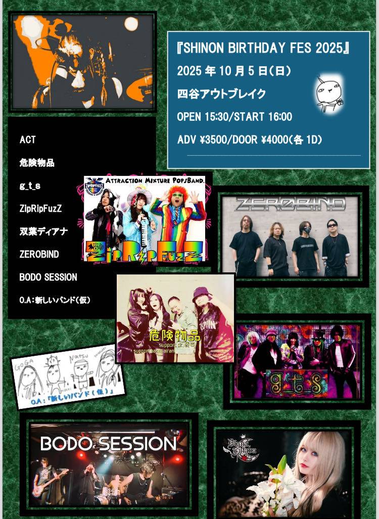 四谷OUTBREAK【SHINON BIRTHDAY FES 2025】に出演します!!