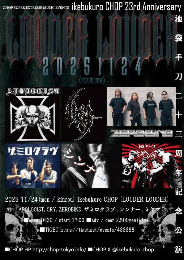 池袋手刀presents 【LOUDER LOUDER】に出演します!